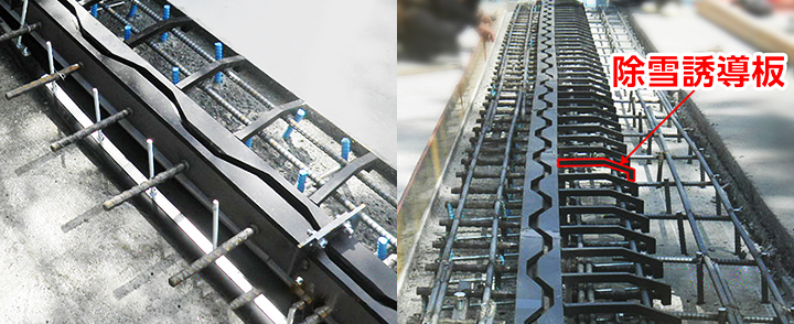 除雪車の刃が伸縮装置に引っかかることを防ぐため、